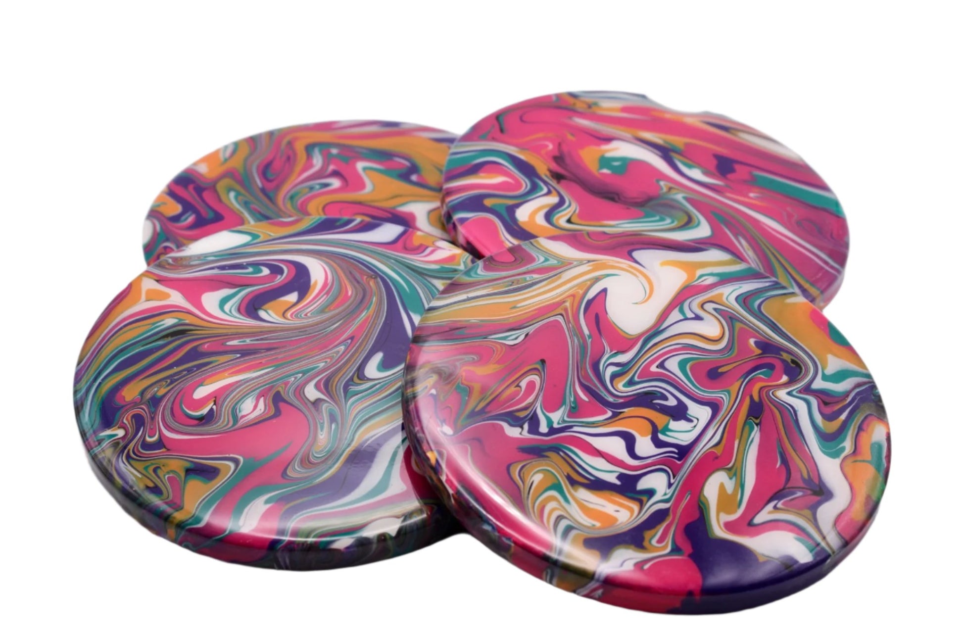 Set of 4 Original Acrylic Fluid Art Ceramic Coasters with Holder